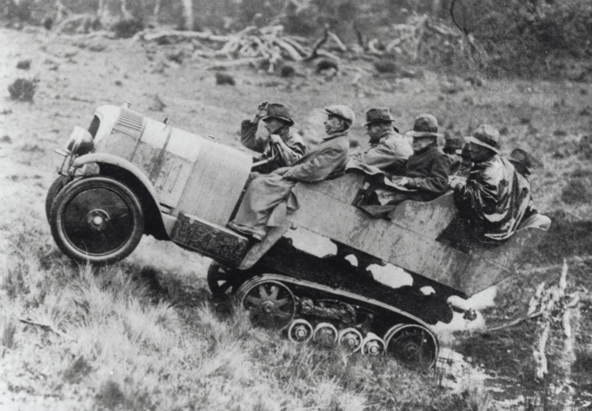 A posed photo of Bob Quaile with two tourists in his wagonette at Daisy Dell. Burrows photo from the Weekly Courier, 15 February 1923, p.21.