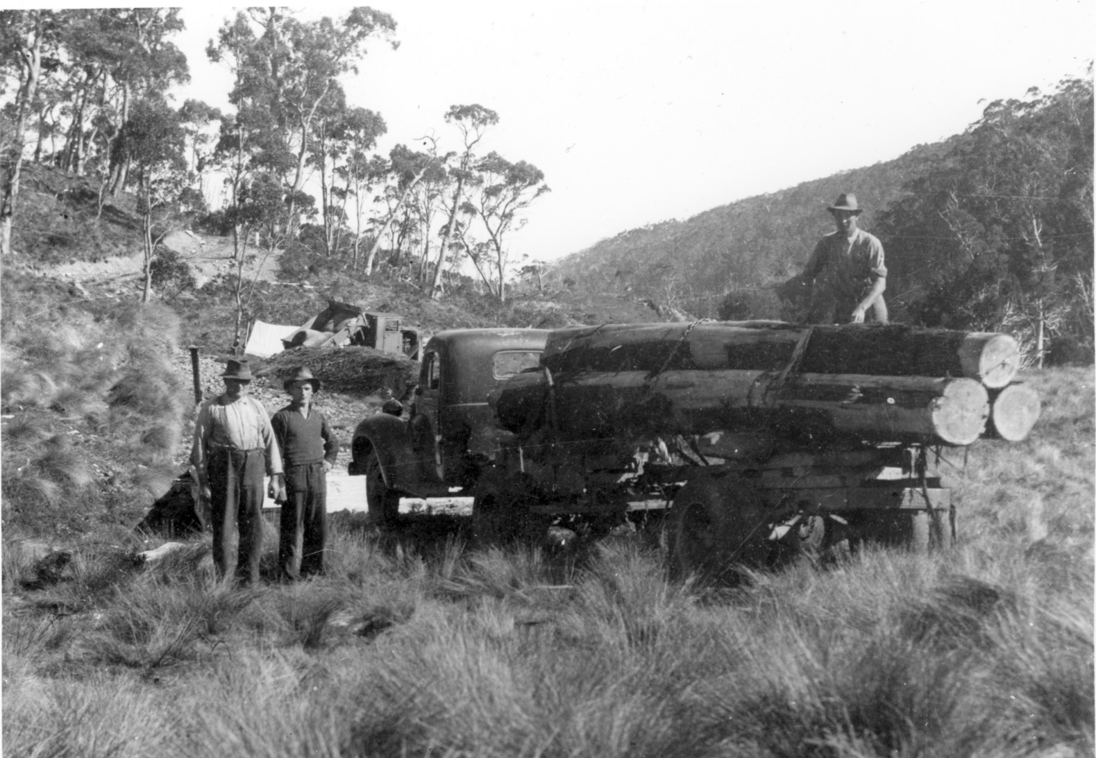 We left the world behind at seven o’clock this morning, in the most glorious sunshine. Our vehicle was a weather beaten old warrior, and had evidently started life as a mailcoach [sic]. We were inclined to smile at it and our smiles broadened as our driver with a twinkle in his eyes, implored us to be careful of the upholstering, but before our journey ended we had a huge respect for our coach. We set off merrily along a very fine road, of which Daddy Q was very proud. He is evidently a man of many parts and equally at home as councillor, farmer, miner, road-maker, and moreover is no mean conversationalist.[23] He proved quite equal to carrying on several conversations at once, interspersed with various remarks to horses (sometimes with funny results, as for instance when the remark ‘Gee up, Commonwealth Bank’ nearly sent Mona into hysterics.) I had always had a vague idea that drivers of horses used fairly lurid language but, ‘Gee up! You lazy rubbish’! was about the most violent expression we heard — much to Mona’s disappointment. For the 1st time in my life, I found myself passing through mining country. We passed quite close to the ‘Shepherd and Murphy’, and Round Hill mines. Daddy Q also has a claim which he pointed out to us.[24] Further along the road we had quite a picturesque glimpse of a fine herd of wild cattle, grazing on a hillside. Great tracts of the country we passed through had been burnt, and I saw a variety of fence that was new to me —composed of simply of single huge trunks (mostly chared [sic]) laid end to end.