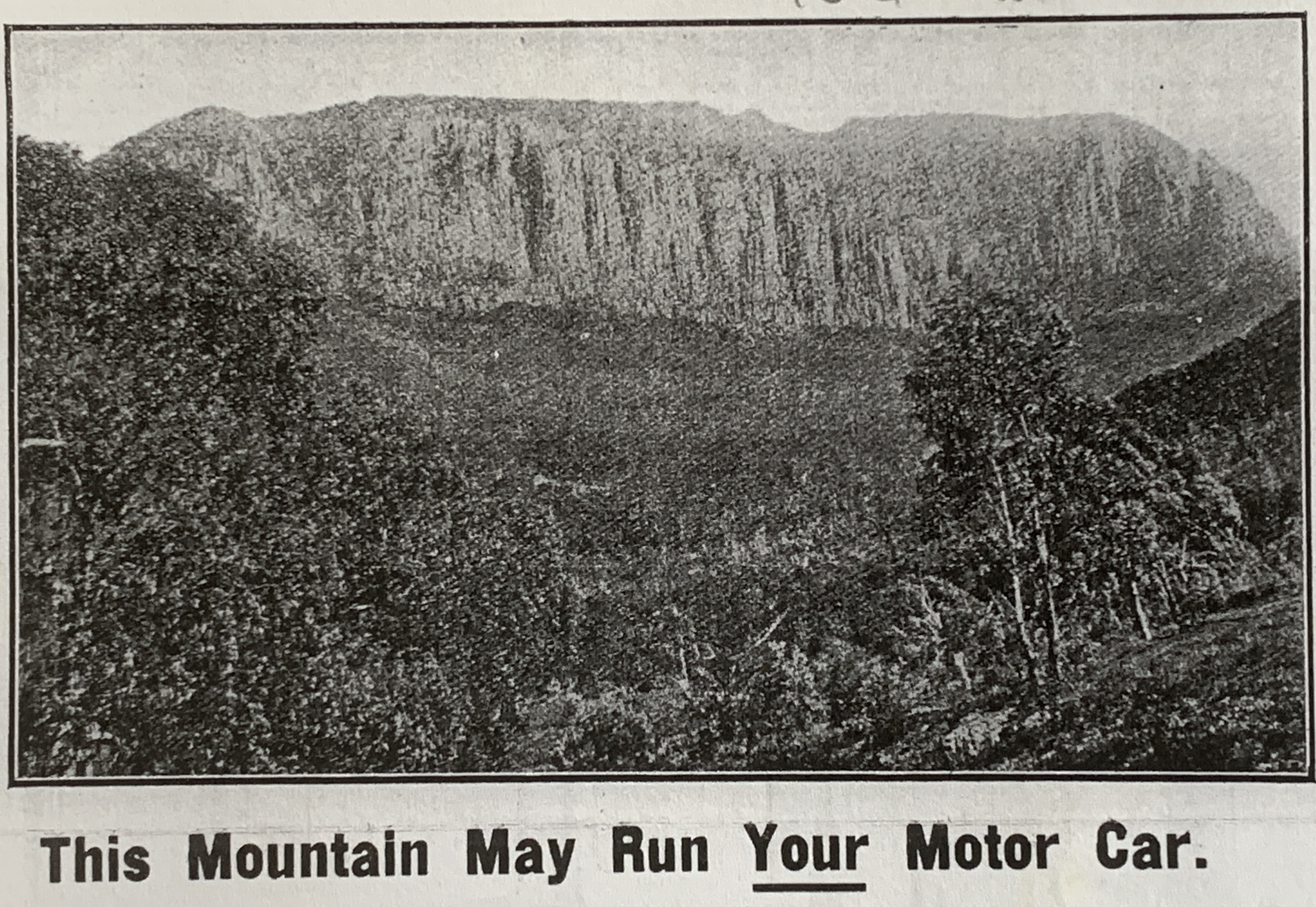 We who were facing each other were bobbing and bowing to each other in a most absurd way. But it was a new experience to us and we rather enjoyed it, but nevertheless no-one grumbled when the horses were allowed to leave the ‘made road’ and take their way through paddocks to ‘Daisy Dell’, where quite our ideal dairy maid — fresh, comely and plump — served us with butter, cheese and cakes of the best. The horses were glad of the spell, as the road had been steadily ascending the whole way, and it was a pretty strenuous climb for them. We started once more, this time in a fine drizzling rain, which prevented our getting any of the early glimpses of the Cradle to which we had been looking forward.