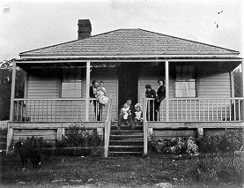 Hazel and William Murray in front of their ‘mansion’ at Balfour, 1911, with daughter Jean. Marital bliss or a façade for the photographer? Photo 1997:P:5591, QVMAG, Launceston.