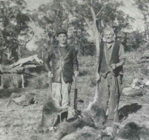 [21] Gordon had a big kangaroo dog called Slocum which would take him to his kills. One day Gordon put his feet up and smoked for 30 minutes before Slocum returned. ‘Where is he then?’, the master prompted, setting the dog off towards Lake Carruthers to a big kangaroo he’d killed. But Slocum wasn’t finished, refusing to budge. ‘Well where is he then?’. Off they went again beyond Lake Carruthers to another big kangaroo carcass.